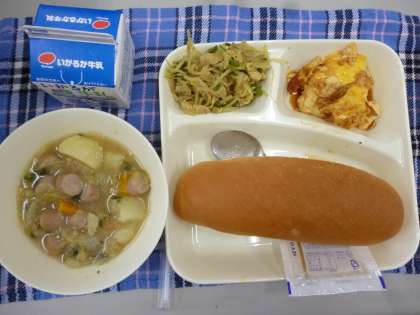 2月9日の給食は「ポトフ」「カレーソテー」「焼きプリン」です。焼きプリンは甘さがちょうどよく、子どもたちはとてもうれしそうでした。