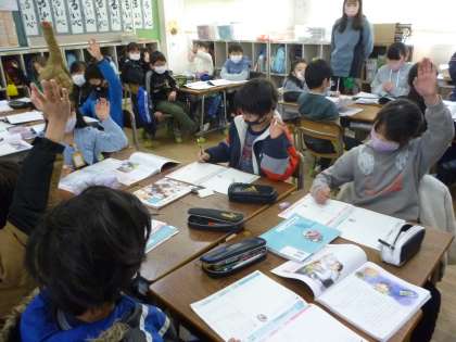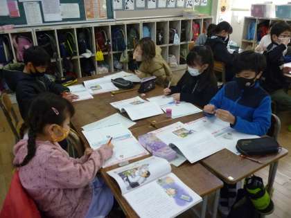 3年生は道徳の学習で自身をコントロールしていくことの大切さについて考えました。ゲームを夜遅くまでして翌日に体調を崩し、お医者さんから「自分をコントロールするのは家族ではなく自分自身である」ことを言われるというお話です。今後の行動について考えていきました。