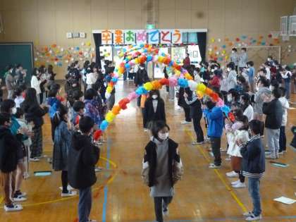 今日は「卒業を祝う会」を行いました。全児童が一堂に集まっての開催は4年ぶりです。