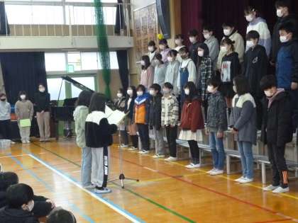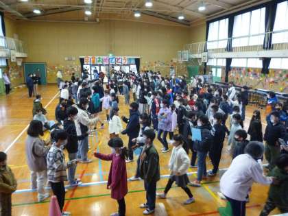 はじめのあいさつに続いて、縦割り班ごとのジャンケンゲームです。