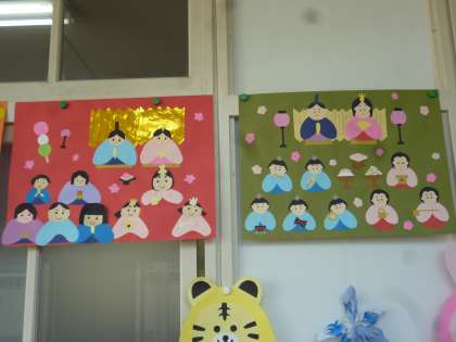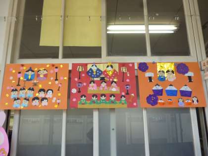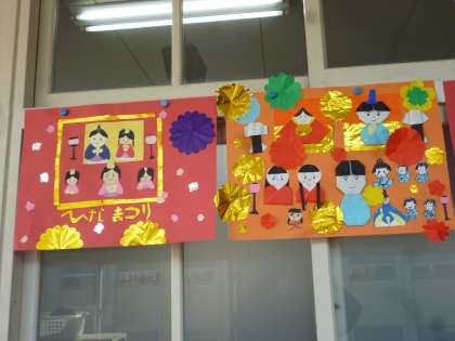今日はひな祭りです。校内にはひな祭りの掲示物が見られます。