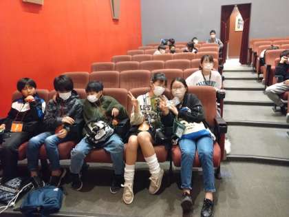 お寿司作りの体験も大人気でした。作ったお寿司はその場で食べることができます。演劇にメンバーが出るので、劇場にたくさん集まってきました。