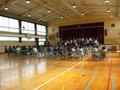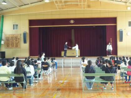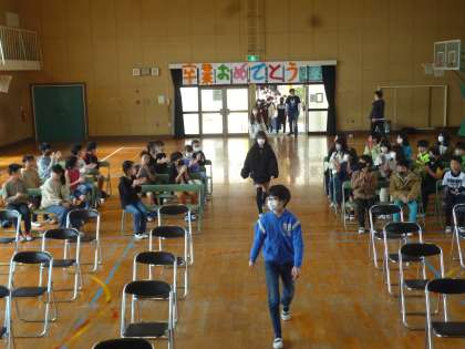今日は5年生と6年生が初めて合同で卒業式の練習をしました。どちらの学年も呼びかけが上手で、気持ちがこもっていました。