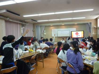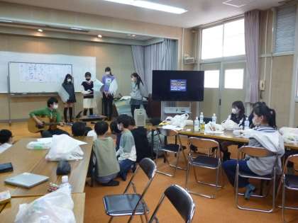 6年生は午後から茶話会をしました。学習したことのクイズやイントロクイズなど楽しい企画が続きました。担任の先生を飛び入りで参加させる劇もあり、最後はビンゴ大会で盛り上がりました。卒業式の練習では緊張感でいっぱいでしたが、茶話会はすっかりリラックスして、みんな楽しい時間を過ごしていました。歌とギターが上手な先生の弾き語りもあり、みんな大喜びでした。