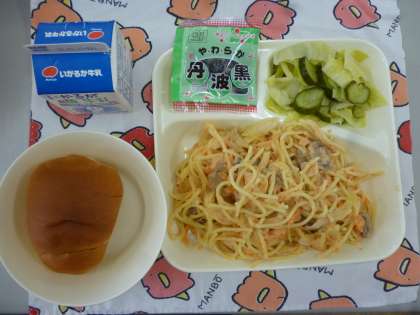 3月13日の給食は「さけのクリームスパゲッティ」「キャベツときゅうりのサラダ」「ソフト黒豆」です。みんなに人気だったスパゲッティを食べるのは6年生は最終になりました。いつまでもこの味を覚えていってほしいですね。