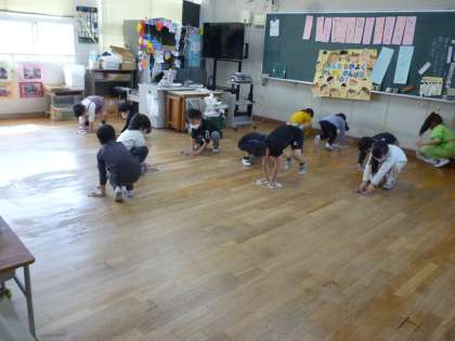 1年生はお楽しみ会をして楽しみました。午後は大掃除をして次の1年生のために教室をきれいにしていました。