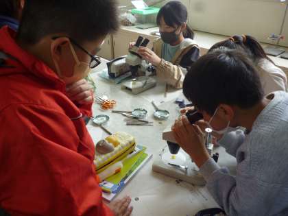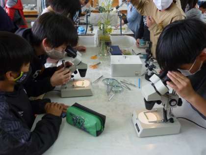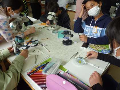5年生はアブラナの花の観察しました。ルーペや顕微鏡で拡大して観察していきました。顕微鏡はピント合わせがむずかしかったようです。