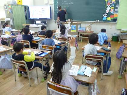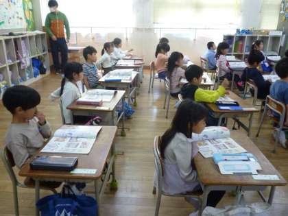 5月に1年生と2年生が「学校たんけん」をします。これは2年生が図書室などの特別教室を1年生に教える取り組みです。1年生は「静かにまわる」など、その時の注意点を確認していきました。