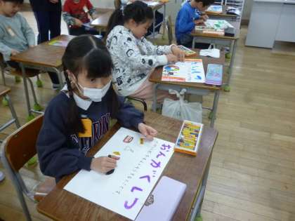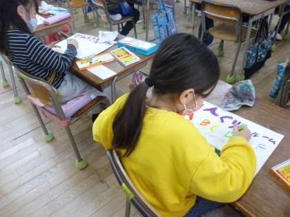 2年生も「学校たんけん」に向けての準備です。案内する「音楽室」など特別教室に貼るポスターを作っていきました。そして2年生を連れていく時の注意点を確認しました。