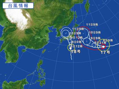 台風18号が、明日の朝に本州に上陸する公算が高くなってきました。つきましては、臨時休校になる可能性もあります。臨時休校となる場合は、次の通りです。
