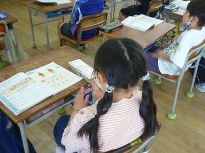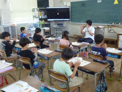 2年生は手拍子に合わせて「はしの上で」という歌を歌いました。拍を正確にとり、リズムに乗って歌おうとがんばっていました。