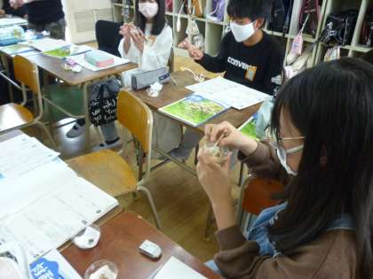 連休前にHPでお知らせしましたように、5年生は発芽について調べています。今日はその結果を確かめました。常温での種は発芽しており、冷蔵庫での種は発芽していないことがよくわかりました。
