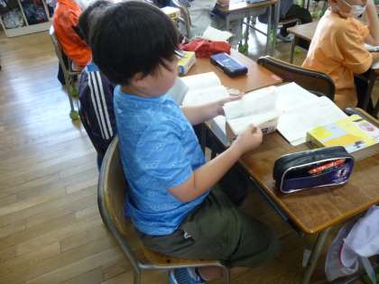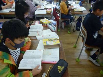 3年生は国語辞典で言葉を調べる学習をしました。あいうえお順など基本を確認し、「ボール」や「切手」などの引き方も習い、いろいろな言葉を調べていました。