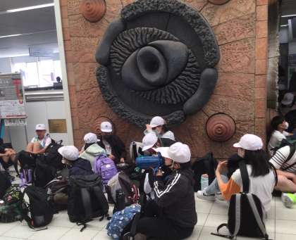 生駒につきました。トイレ休憩中です。みんな元気です。