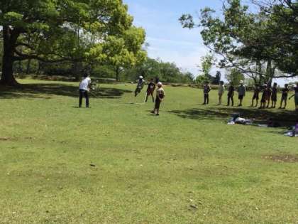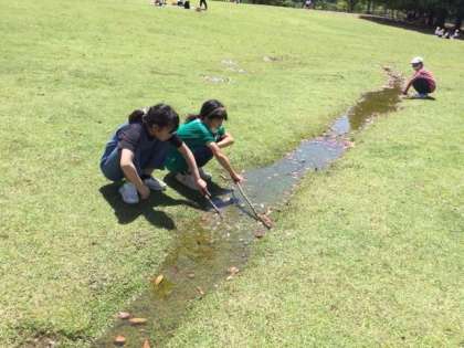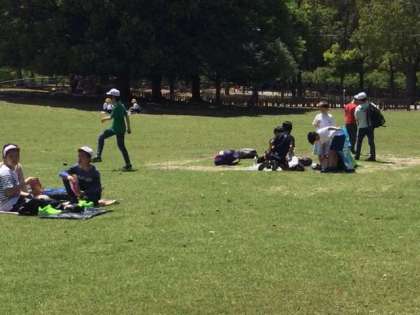 おやつの後、遊びタイムになりました。広い野原で楽しんでいます。