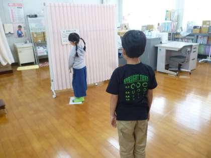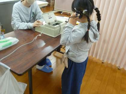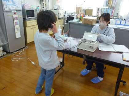 2年生は聴力検査をしました。小さな音をしっかり聞こうと集中していました。