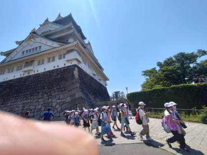 大きな堀を見ながら天守閣に別れを告げます。