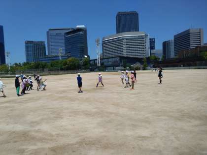 「太陽の広場」に着き、フリスビードッジで遊びました。