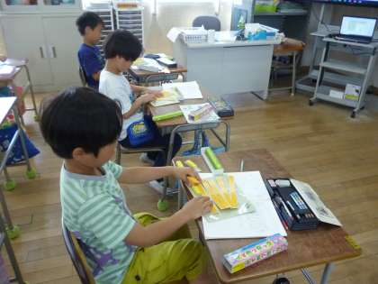 2年生は「54−28」という「くりさがりのある2桁の引き算」の解き方を考えました。1の位「4−8」が計算できないのでどうしたらようか考えていきました。ブロックを使い、10の位から考えていきました。
