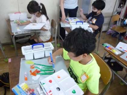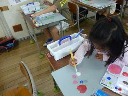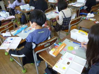 3年生は絵の具で花の絵を描いていきました。花を濃く描くなど、花が目立つように工夫していました。
