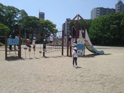 メインの遊具広場に着きました。さっそく遊具遊びです。