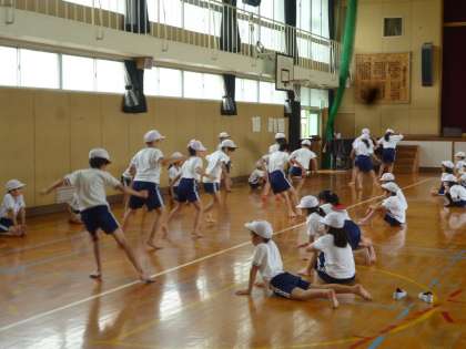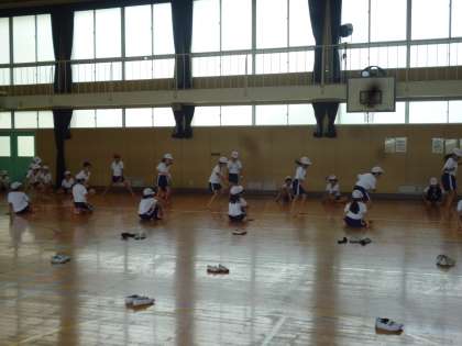 各学年、順調に新体力テストを進めています。今日は4年生が反復横跳びをしました。リズムよく跳ぶのがむずかしく、懸命に取り組んでいました。
