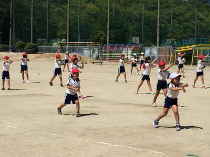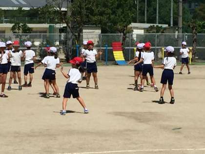 演技の練習も体育館から運動場に移ってきました。ハッピーを表現している2年生は、かわいらしさと笑顔がすてきです。