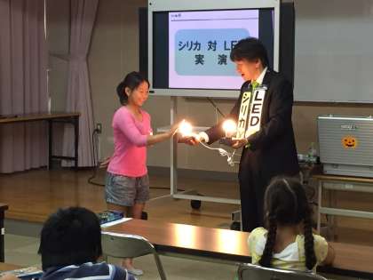 5年生は環境やエコについて追究しています。今日は、パナソニックから出前授業をお願いして、エコ家電について学習しました。真空断熱材のすごさを映像で見たり、電球とLEDの違いを実験したりして、楽しくわかりやすく学ぶことができました。