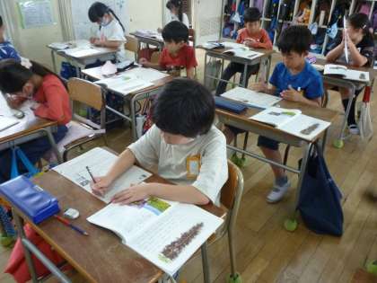 2年生は国語で「たんぽぽ」についての説明文を読み取っています。たんぽぽについて文章を読んでわかったことをワークシートにまとめていきました。