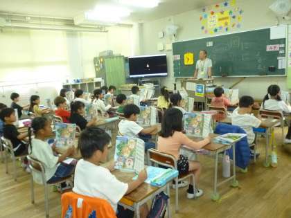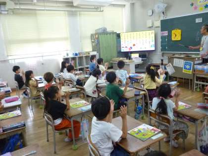 1年生は校歌の練習をしました。はっきりと大きな声で歌うように気を付けて歌っていました。6年間、行事のたびに歌うので、これからもしっかりと練習をしていきます。
