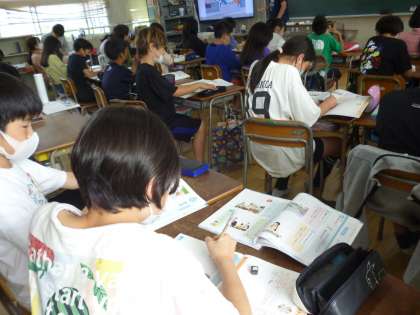 5年生は道徳できまりを守ることについて考えました。学校のきまりだけでなく、店の商品をとってはいけないなど、広く社会のルールを守る大切さについても考えました。