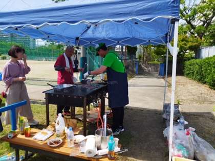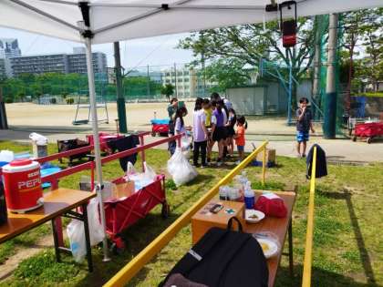 5月21日(日)に、子ども会で「親子バーベキュー大会」が南港光小学校運動場と芝生広場で行われました。子どもたちは水遊びをしたり、運動場でボール遊びをしたりして楽しみました。お昼には、大きな鉄板で焼いたボリュームたっぷりの焼きそばや、バーベキューコンロでマシュマロを焼いて食べました。大変楽しい一日を過ごしました。