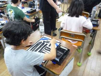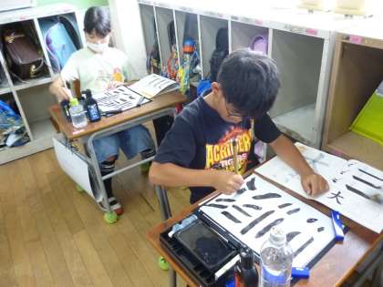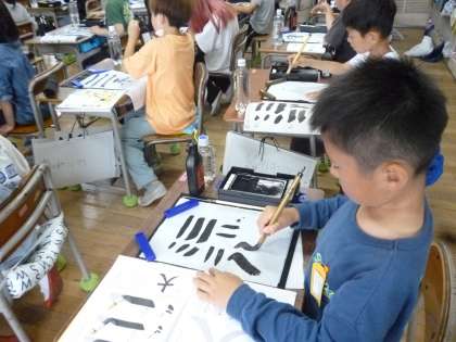 3年生は習字で「一」の字を書きました。「筆を立てる」ことを意識して書いていました。横の「一」に続いて縦に書く練習もしました。