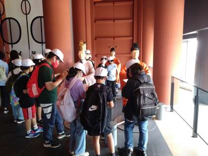 6年生は社会見学で歴史博物館に行きました。まず、奈良時代の大極殿のコーナーです。