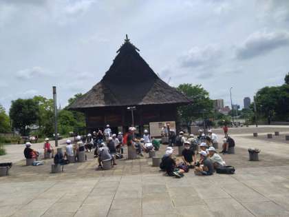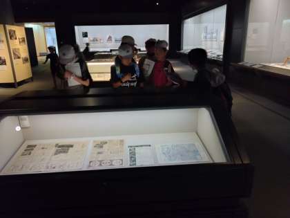 館内見学後は、5世紀の高床式の「法円坂建物群」の再現建物を見学して帰校しました。マナーよく見学して立派な態度でした。すでに4時間目の授業を始めています。