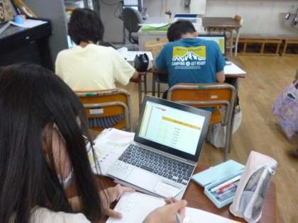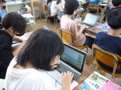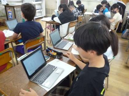 5年生は社会科で米作りについて学習しています。今日はインターネットで米の収穫量の多い都道府県を調べ、新潟、北海道、秋田の順に多いことを理解していきました。