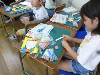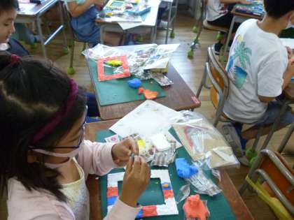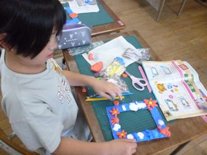 3年生は写真立てのフレームを作りました。フレームの原型に紙ねんどで成形し、色を塗っていきました。きれいに色を塗って仕上がりが楽しみです。