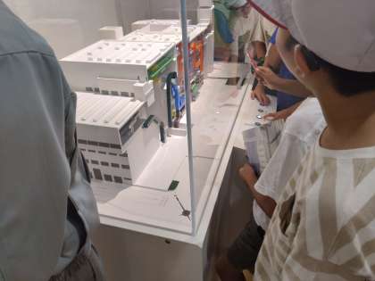 見学が始まりました。まず模型で工場の仕組みを知ります。