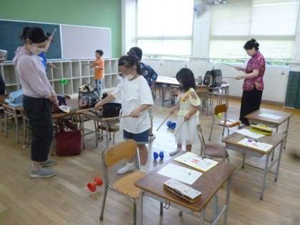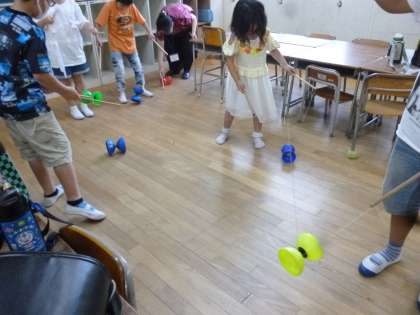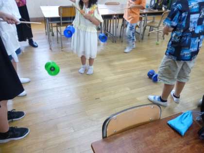 本校では、今年度「国際クラブ」が発足しました。このクラブは火曜日の6時間目に4年生以上が参加するクラブ活動ではなく、中国籍や中国にルーツがある子どもたちが参加するクラブです。基本は木曜日の放課後に活動しています。今日は中国の駒「空竹」(コンジュ)をして中国の文化に親しみました。このように大阪市教育委員会の民族講師の先生から中国の歌や遊びなど、文化について教えていただきます。毎週、子どもたちはとても楽しく活動しています。