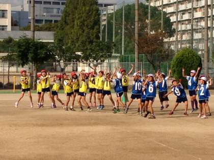 3年生の演技はステップが見せどころです。プログラムでは1番最初に登場する学年演技ですし、盛り上げ役です。スキップ、ジャンプを続けながら、笑顔いっぱいに演じ切るのは、とっても難しいことですが、3年生の子どもたちなら大丈夫です。とても期待しています。