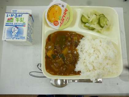 1学期最終の給食はみんなの大好きな「夏野菜のカレーライス」「キャベツときゅうりのサラダ」で、デザートに「みかんゼリー」がでました。夏休み中は給食室の工事、機器の取り換え、害虫駆除、衛生検査など、2学期に備えた準備をしてまいります。