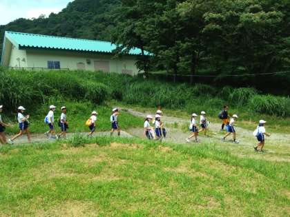 午後の活動開始です。魚つかみの場所に行きます。
