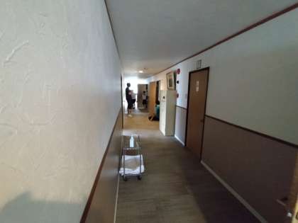 部屋に入り、しばし休憩しています。部屋はすべて和室です。