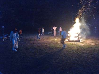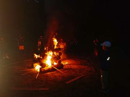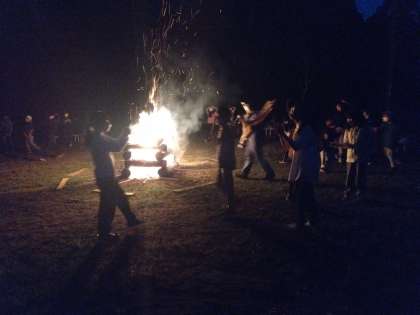 日が暮れてキャンプファイアをしました。火を囲んで楽しみました。