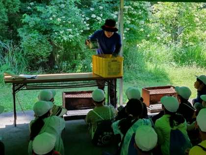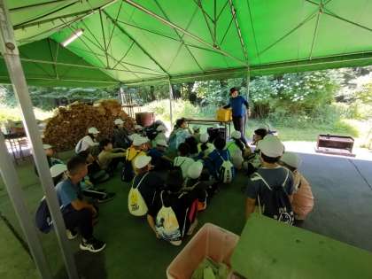 次はカレーライス作りです。まず作り方の説明を聞きます。