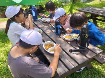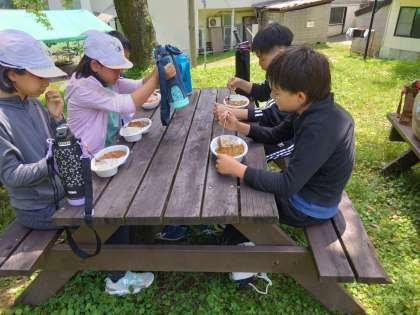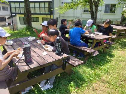 いよいよ昼食です。グループで「いただきます」嬉しそうな食べています。