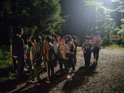 次の活動は肝だめしです。怖いと言いながらも楽しんでいました。最後は宿舎前で星の観察です。「夏の大三角」「北斗七星」「北極星」「さそり座」などがはっきりと見えました。