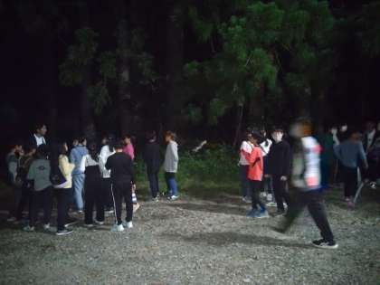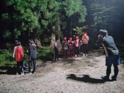 次の活動は肝だめしです。怖いと言いながらも楽しんでいました。最後は宿舎前で星の観察です。「夏の大三角」「北斗七星」「北極星」「さそり座」などがはっきりと見えました。