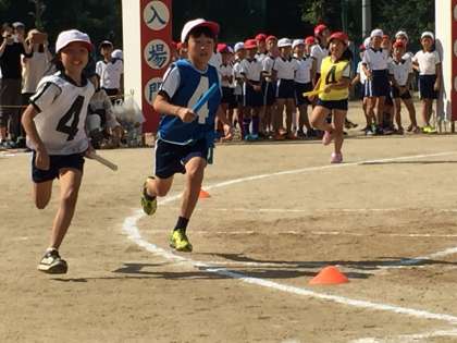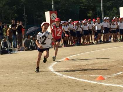 3年生はグラウンドを半周、全力で走ってバトンをつなぎました。低学年のころより、ぐんと大きく成長しました。