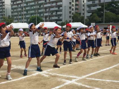1年生のかわいらしいダンスにみんな笑顔になりました。いろいろなところで、一緒に踊っている子もいました。